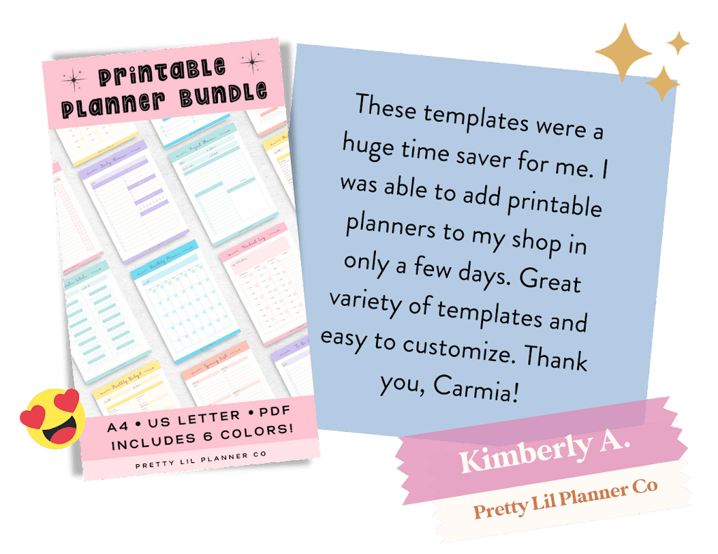With your purchase you will receive a commercial license allowing you to use these templates to create your own planner to sell.