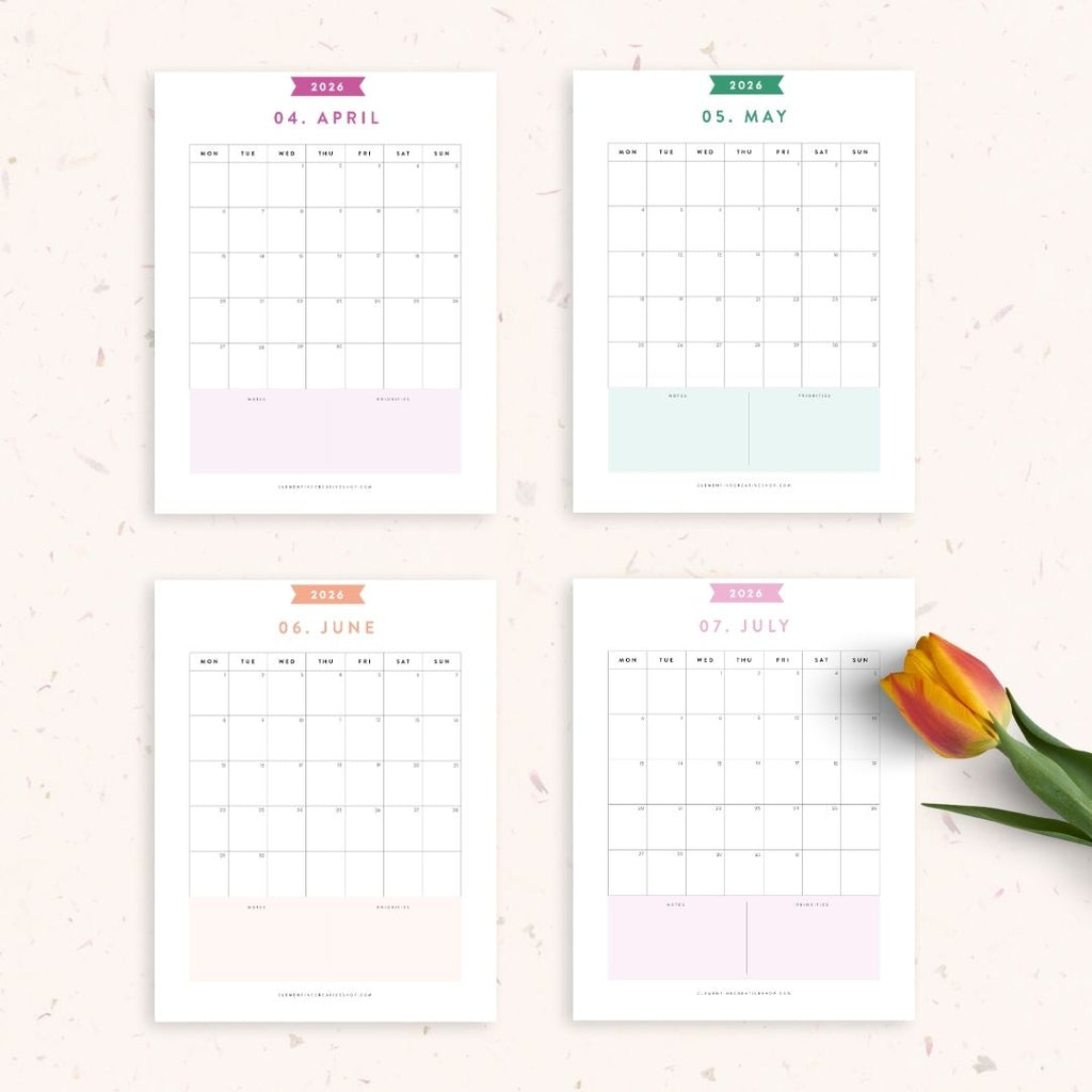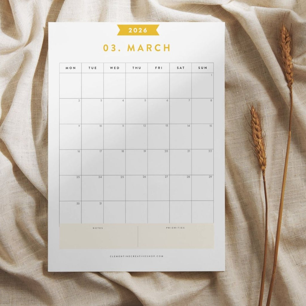 This minimalist 2026 calendar is easy to print at home and looks great on your desk, bulletin board, or in a binder. For durability, print on thicker paper or cardstock so it lasts the whole year.