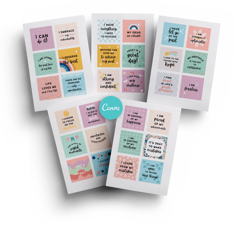 Help your customers be more positive and increase their life satisfaction by offering them these positive affirmation cards. You’ll get 30 adorable cards to edit in Canva. Feel free to use it as-is or change it up to suit your style.
