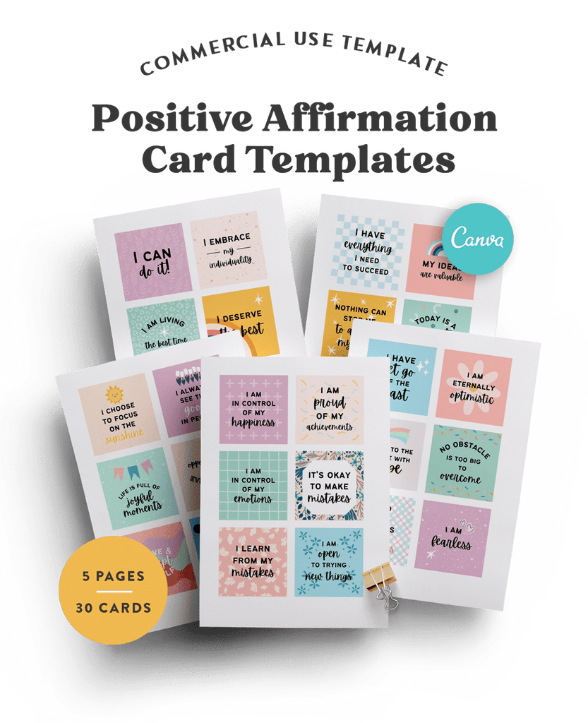 Positive Affirmation Cards Template for Canva (Commercial Use)